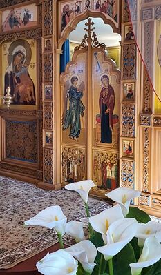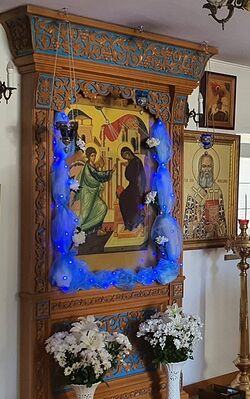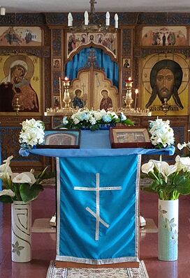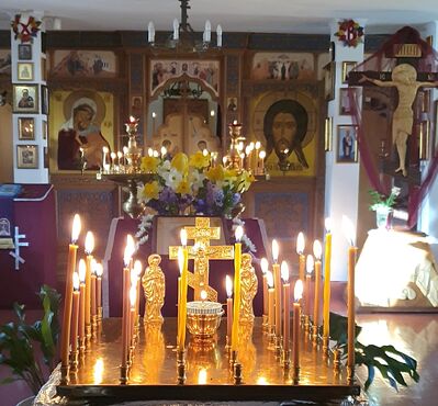 Но вернемся в 90-е годы ХХ века. В течение нескольких месяцев здание храма Благовещения приводилось в надлежащее состояние: усилиями прихожан были убраны простенки, настелен пол. Стены побелили и покрасили, внутри здания выделили Алтарную часть. Трудились по благоустройству храма с утра до позднего вечера с усердием, каждому находилось послушание. Трудами прихожан и благодетелей храм благоукрашался. Со временем изготовили Престол, Жертвенник, аналои и клирос, устроили песочные подсвечники, развесили бумажные под стеклом иконы и тканевый иконостас. Особым событием стало водружение Креста, имеющего чудесную историю происхождения…
