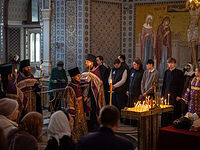 За богослужением молился митрополит Симферопольский и Крымский Тихон, ректор Таврической семинарии иеромонах Андрей (Коротков), преподаватели и студенты духовной школы.