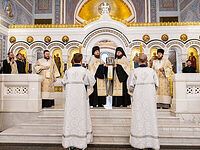 Митрополит Симферопольский и Крымский Тихон сослужил на Патриаршем богослужении в 17-ю годовщину интронизации Предстоятеля Русской Православной Церкви.