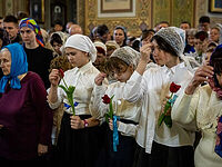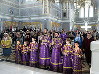 За богослужением молились учащие и учащиеся Таврической духовной семинарии, многочисленные прихожане собора.