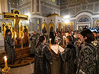 Митрополит Тихон совершил вечерню с чином прощения в Свято-Владимирском соборе Херсонесского монастыря.
