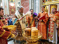 Митрополит Тихон совершил Божественную литургию иерейским чином и чин Великого освящения воды.