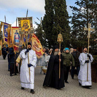 Крымский архипастырь освятил воды реки Героон, где все желающие совершили окунание в её благодатные воды.